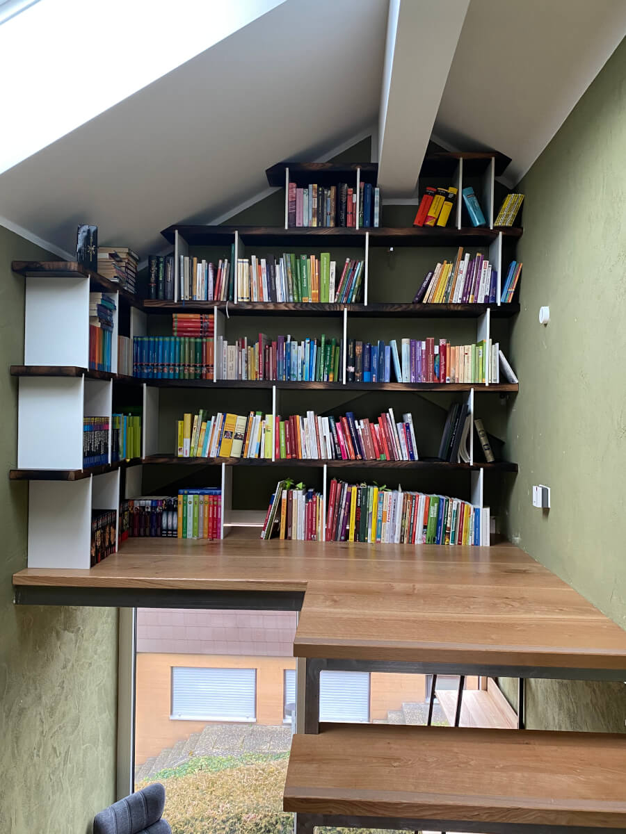Die Planung und Umsetzung unseres Treppenhauses mit Leseecke und Garderoben durch das Baunach Plan Team war einfach fantastisch! Das Podest aus Massivholz Eiche für die Leseecke und das Bücherregal in Eiche yakisugi sind wahre Meisterwerke, die perfekt zu den Dachschrägen passen. Die Treppe mit Wangen aus Eiche und Untertritten in Corian ist nicht nur ästhetisch ansprechend, sondern auch stabil und funktional. Die Garderobe im Erdgeschoss mit Sitzbank in yakisugi und die Garderobe im Untergeschoss mit Schrank aus Fenix und Massivholz yakisugi sind genau nach unseren Wünschen gestaltet worden. Wir sind begeistert von der Qualität der Materialien und der handwerklichen Präzision. Vielen Dank für die großartige Arbeit!