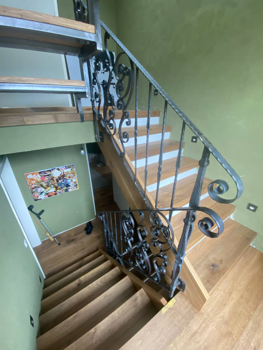 Treppe: Wangen in Massivholz Eiche, Untertritte in Corian